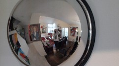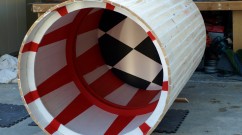 Building the Kaleidoscope barrel with pine wood and plywood, 6ft X 5ft X 3ft. One of nine sculptures Constructed for the Carlsbad Sculpture Garden solo show, 'Here I Come, Ready or Not!' 2008.