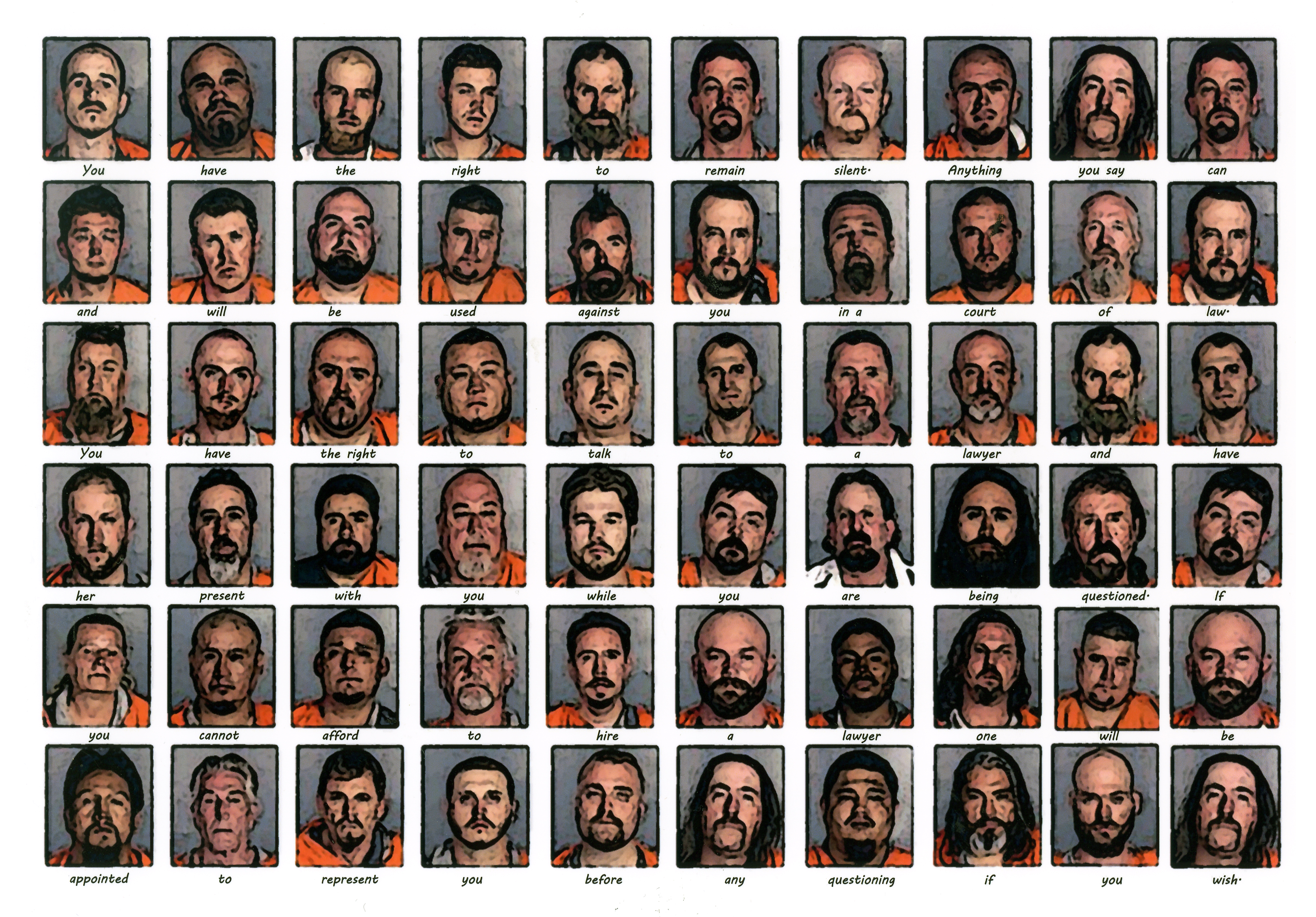 Miranda is a 15in X 20in digital representation of the Waco accused and their rights.